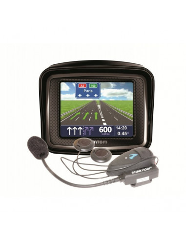 Le kit mains libres Bluetooth Scala Rider (fourni en sachet, avec sa documentation) permet d'écouter les instructions vocales du GPS. |